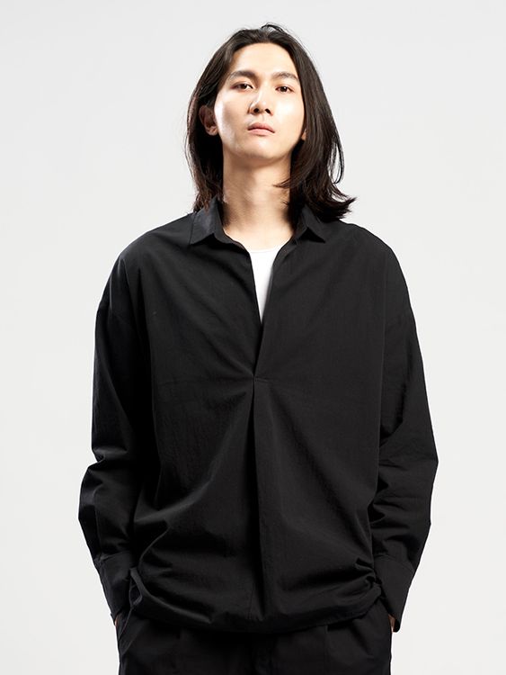 세미 드롭숄더와 루즈한 라인이며, 노버튼 트임 디테일이 멋스러운 셔츠입니다.